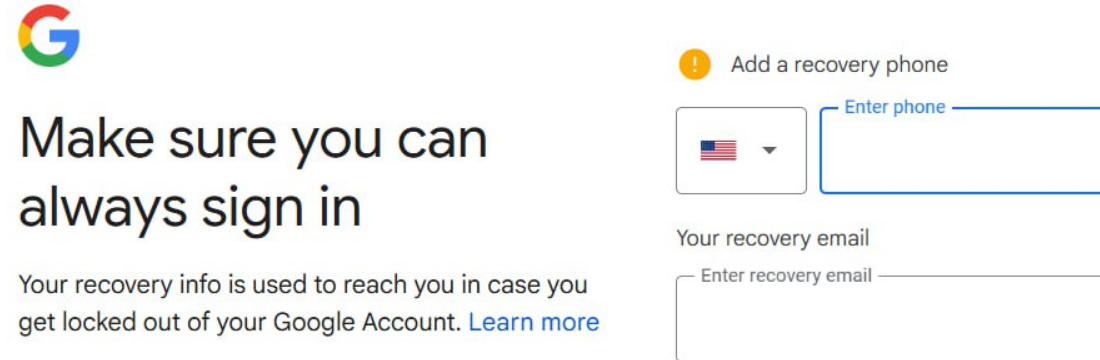 Google账号:如果出现图1页面,记得千万要先添加你自己的辅助邮箱进去;
